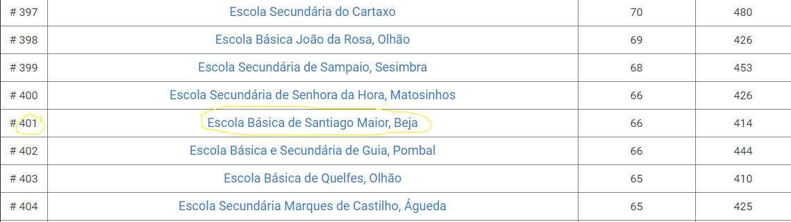 São 20:36 do dia 11 de dezembro. Num universo de 1126 escolas, estamos em 401º: